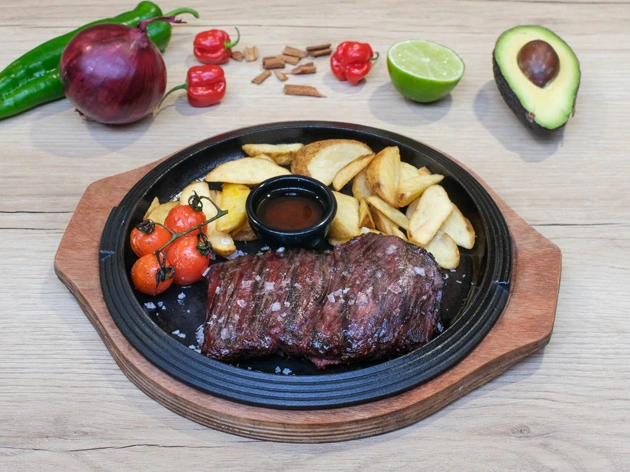 Todas nuestras parrilladas van acompañadas con arroz, menestra, patacones o patatas y ensalada.